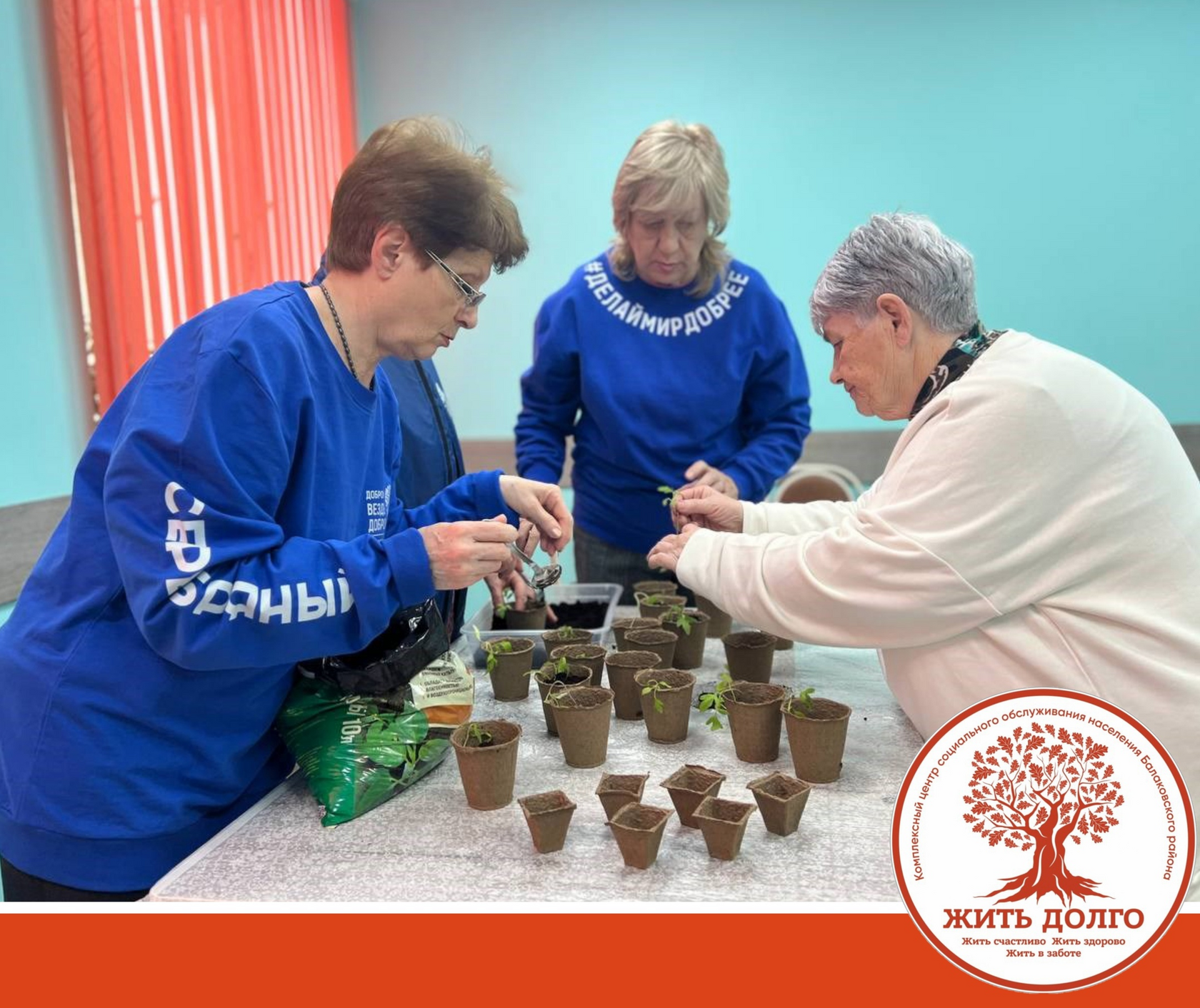 Серебряные добровольцы Комплексного центра социального обслуживания населения Балаковского района активно готовятся к проведению благотворительной акции «ЭКОкурьер». Они принесли в центр излишки выращенной дома рассады томатов, бархатцев и декоративной капусты. Волонтеры аккуратно пересадили растения в бумажные горшочки, чтобы продолжить их выращивание.