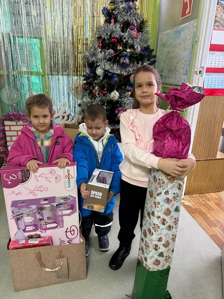 Сам генеральный директор ППГХО подарил девочке Ангелине искусственную елку. Первый заместитель генерального директора по экономике и финансам Юрий Гришин исполнил мечту ребенка о смарт-часах, беспроводных наушниках и худи. Первый заместитель – главный инженер ППГХО Александр Рабольт приобрел в дар огромного плюшевого Кота Батона. Такую же большую мягкую игрушку в виде Медведя доставил в санаторий первый заместитель генерального директора объединения по развитию Олег Проскуряков.