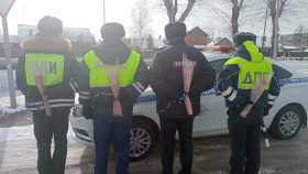 Накануне празднования Международного женского дня сотрудники Госавтоинспекции и Военной автоинспекции поздравили прекрасную половину автолюбителей и провели уже ставшую традиционной поздравительную акцию «Цветы для автоледи».