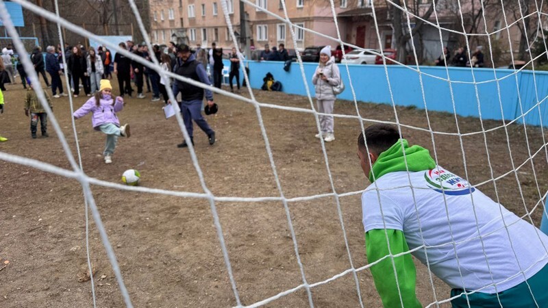 Силами добровольцев площадку очистили от зарослей, отремонтировали оборудование, установили новые сетки и баскетбольные кольца.
