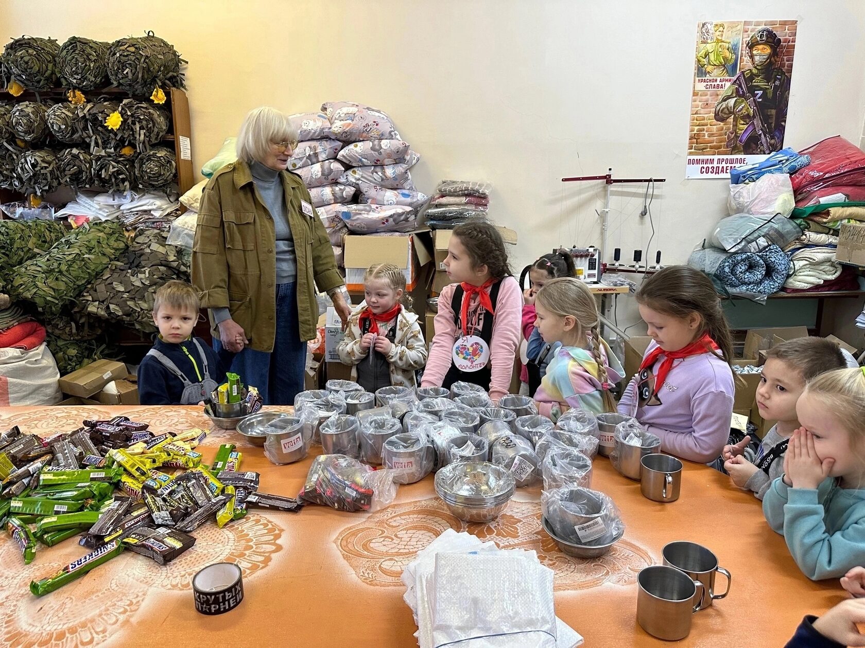 Маленькие гости из детского сада №27 г. Озерска посетили цех добровольческого отряда «Шьем для наших».