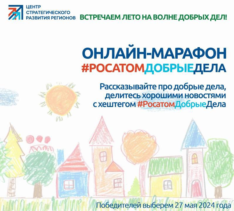 Друзья, давайте встретим лето на волне добрых дел! Объявляем о старте онлайн-марафона #РосатомДобрыеДела!