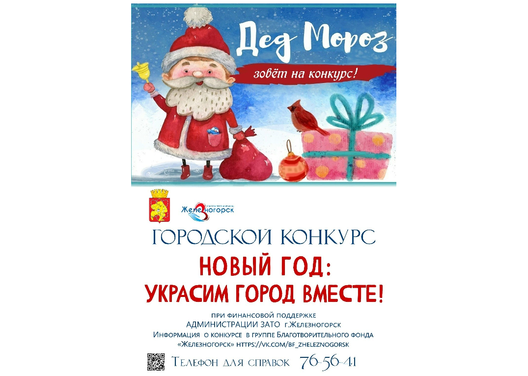 Благотворительный фонд «Железногорск» снова зовёт всех создателей праздника на добрый и тёплый конкурс «Новогоднее настроение: украсим город вместе!».